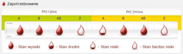 Zapotrzebowanie na krew, stan aktualny na dzień 19.11.2013r.