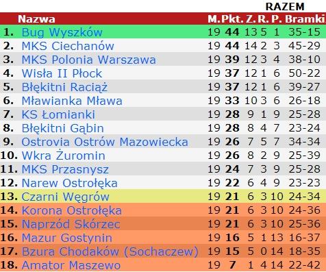 Ostatecznie spotkanie zakończyło się bramkowym remisem 1-1 (1-0). Piłkarze z Wyszkowa nadal są liderami IV ligi, ale muszą się mieć na baczności, bo MKS Ciechanów depcze im po piętach.