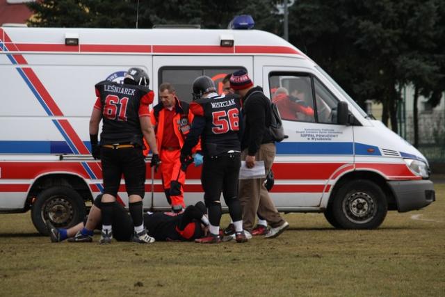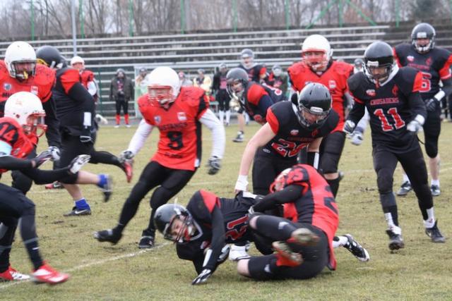 16 marca br. na stadionie Wyszkowskiego Ośrodka Sporu i Rekreacji naprzeciw siebie stanęły zespoły "Crusaders" Warszawa i Mustangs Płock. W barwach ekipy ze stolicy występuję kilku wyszkowian i mieszkańców okolic, była to więc dla nich okazja do zaprezentowania swoich umiejętności przed rodzinami, znajomymi, kibicami. Spotkanie, rzutem monetą, rozpoczął burmistrz Wyszkowa, Grzegorz Nowosielski.
