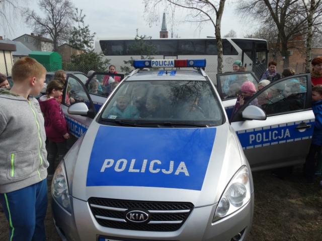 Jedną z atrakcji szczególnie dla najmłodszej grupy uczestników był policyjny radiowóz.