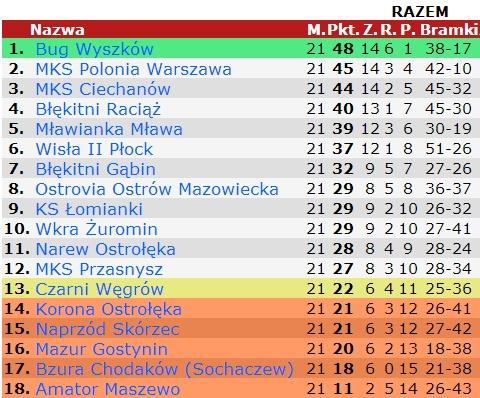 Bug pomimo remisu w Łomiankach nadal utrzymał fotel lidera, jednak jego przewaga nad drugą w tabeli Polonią stopniała do trzech punktów.