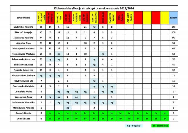 Stypendystce Gminy Wyszków brak tytułu Mistrza Polski Juniorów z UKS Varsovia (przegrany półfinał) nie przeszkadza w utrzymaniu się na drugim miejscu w klasyfikacji strzelczyń bramek w sezonie 2013/14.