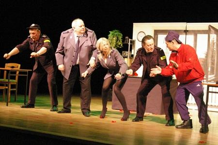 Przedstawienie pokazujące kilka dni pracy policjantów z komisariatu w przygranicznym miasteczku wywoływała gromkie brawa i salwy śmiechu wśród publiczności.