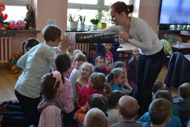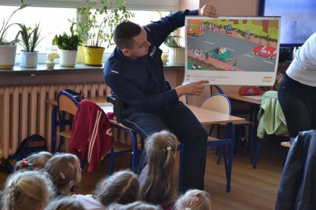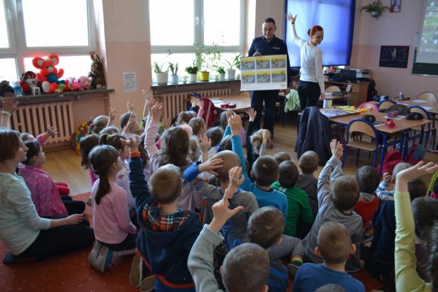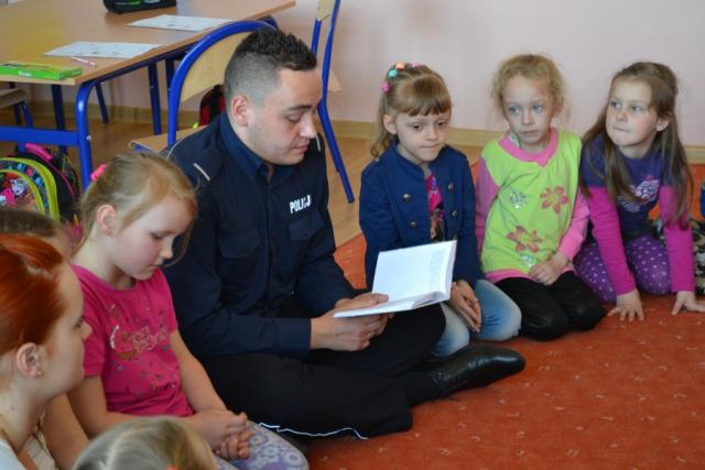 Policjanci uczyli dzieci, jak bezpiecznie przechodzić przez przejście dla pieszych oraz jak zachować się na drodze, pokazywali też małym słuchaczom jak ważne jest noszenie elementów odblaskowych. Kolejnym ważnym tematem było bezpieczeństwo w domu oraz w kontaktach z osobami obcymi. Za pomocą przygotowanych tablic edukacyjnych policjanci omawiali z uczniami zagrożenia jakie mogą ich spotkać podczas zabaw na dworze. Na zakończenie wizyty w ramach ogólnopolskiej kampanii społecznej "Cała Polska Czyta Dzieciom" policjanci czytali najmłodszym bajki.