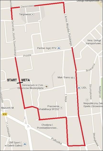 Władze miasta proszą wszystkich mieszkańców o nieparkowanie w dniu biegu samochodów na ulicach po których odbywać się będzie bieg i stosowanie się do zaleceń służb porządkowych. Trasa biegu na poniższej mapce.