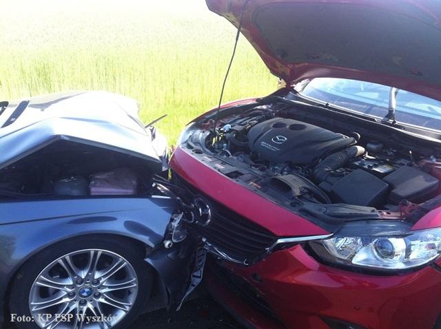 Dwa auta zderzyły się czołowo w miejscowości Olszanka. Jedna osoba została poszkodowana.