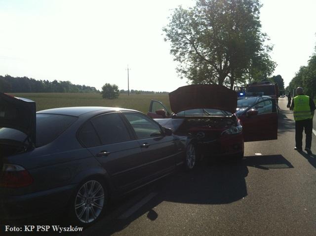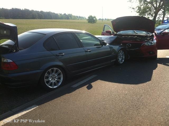Po przybyciu na miejsce zdarzenia zastano dwa auta osobowe, które uległy czołowemu zderzeniu. Kierowcy opuścili pojazdy samodzielnie i nie wymagali opieki medycznej, natomiast pasażerce BMW, skarżącej się na bóle kręgosłupa, zespół pogotowia ratunkowego udzielił pomocy medycznej.