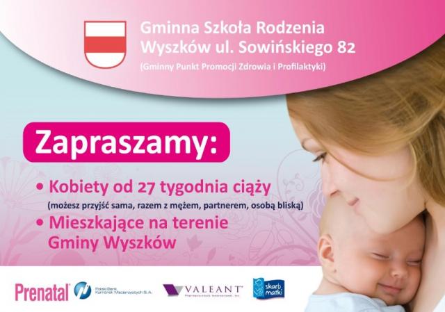Gmina Wyszków zaprasza przyszłych rodziców mieszkających na terenie gminy Wyszków do udziału w bezpłatnych zajęciach edukacyjnych w Gminnej Szkole Rodzenia. Zajęcia prowadzą położne, fizjoterapeuta i psycholog.