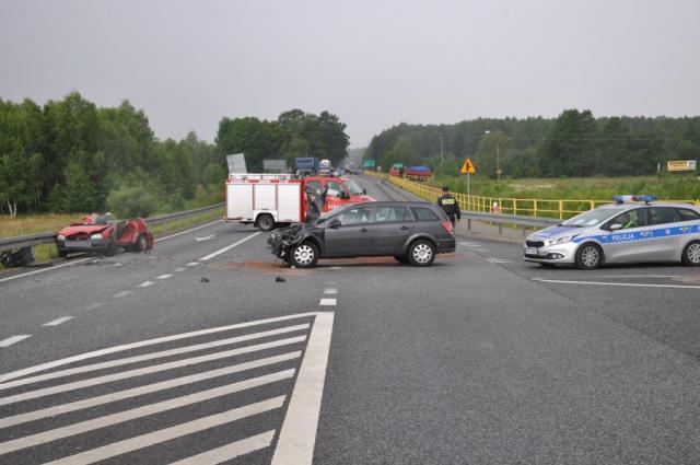 Do bardzo poważnie wyglądającego wypadku drogowego doszło w sobotę rano na trasie K - 62 w Skuszewie. W zdarzeniu uczestniczyły dwa pojazdy. Dwie osoby przewieziono do szpitala.
