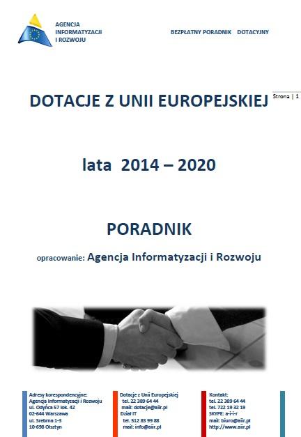 W darmowym Poradniku Dotacyjnym na lata 2014 - 2020 Agencji Informatyzacji i Rozwoju uzyskacie informacje na temat ilości pieniędzy z Unii Europejskiej w poszczególnych programach i województwach, dowiecie się jak należy przygotować się do pisania wniosku, znajdziecie informacje o możliwości pomocy czy też współpracy.