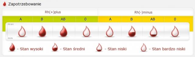 Zapotrzebowanie na krew, stan aktualny na dzień 16.09.2014r.