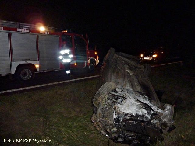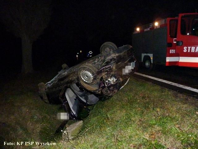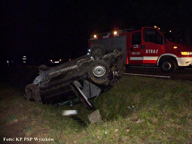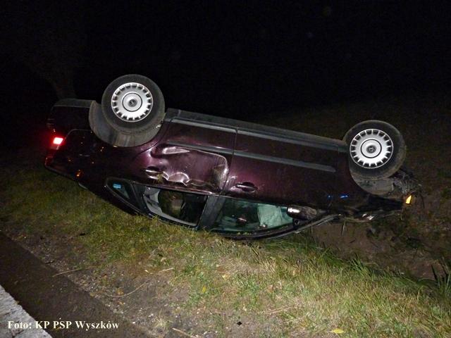 Samochód osobowy wpadł w poślizg i dachował. Podróżowały nim trzy osoby, jedna z nich odniosła obrażenia.