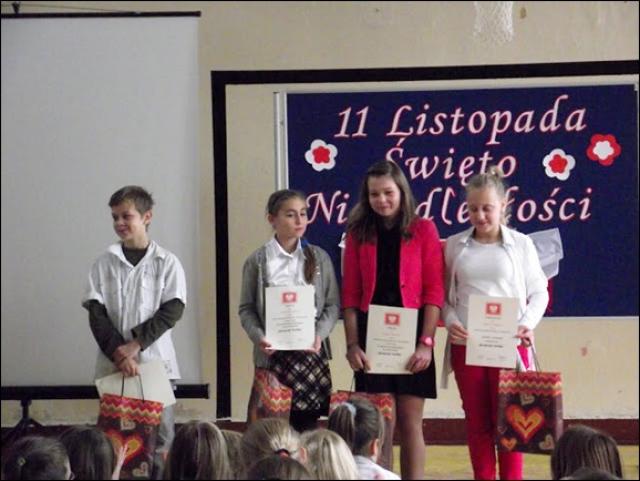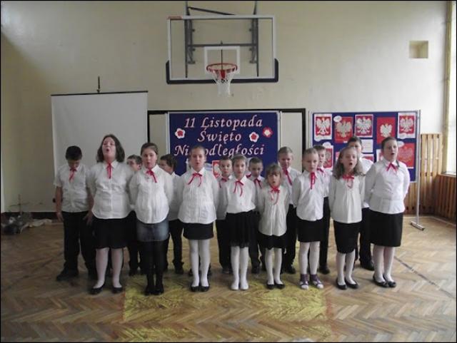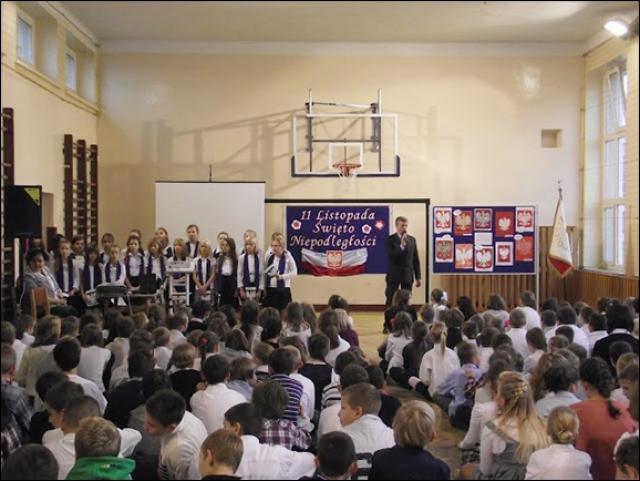 W dalszej części uroczystości uczniowie ponownie spotkali się na sali, aby zaprezentować wyniki swoich prac. Miłym przerywnikiem w naukowej prezentacji był taneczny występ uczennic klas VI, które pod kierunkiem M. Nizińskiej pokazały układ zumby. Dzięki pracom w grupach uczniowie przybliżyli postać patrona szkoły, poznali przeszłość naszego kraju, namalowali piękne plakaty i ułożyli zabawne wiersze o naszej szkole. W ten sposób staramy się zasiać ziarno patriotyzmu w sercach naszych uczniów. Na koniec uroczystości odbył się mecz piłki siatkowej między uczniami a nauczycielami wychowania fizycznego. W klasach młodszych odbył się przegląd pieśni patriotycznych w wykonaniu klas III. Klasy II zaprezentowały się w recytacji wierszy okolicznościowych.