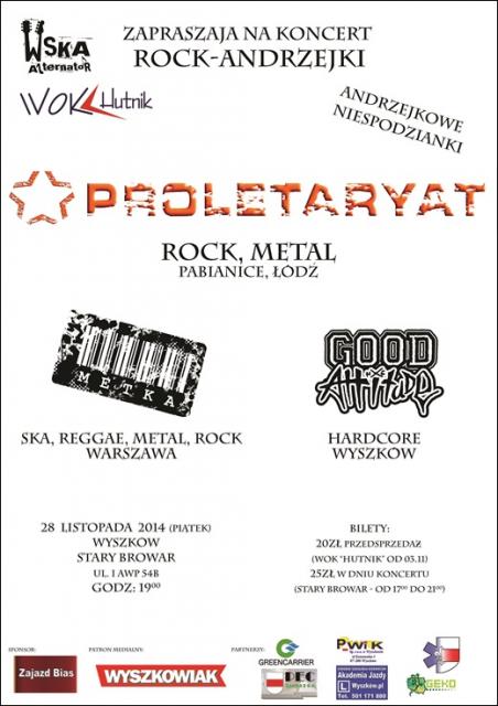 WSKA Alternator i Wyszkowski Ośrodek Kultury "Hutnik" zapraszają na koncert Rock-Andrzejki.