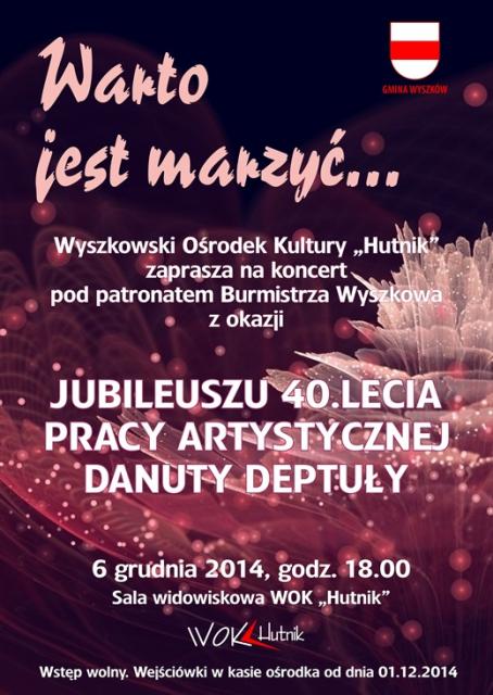 Wyszkowski Ośrodek Kultury "Hutnik" zaprasza na koncert pod patronatem Burmistrza Wyszkowa z okazji Jubileuszu 40.Lecia pracy artystycznej Danuty Deptuły
