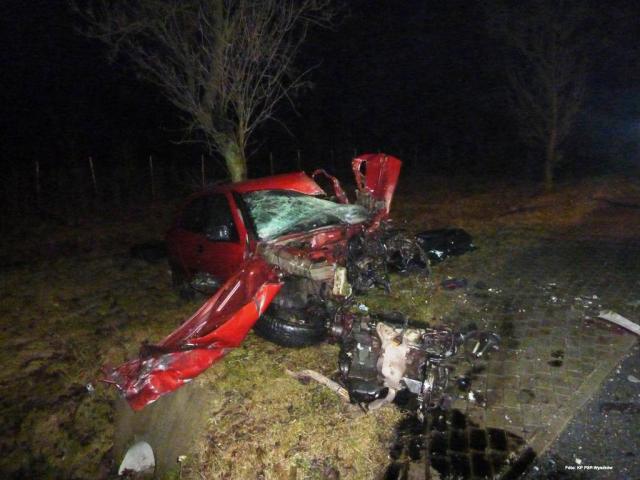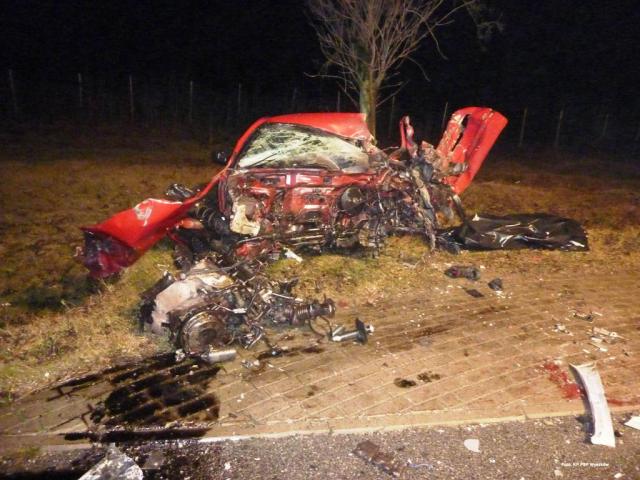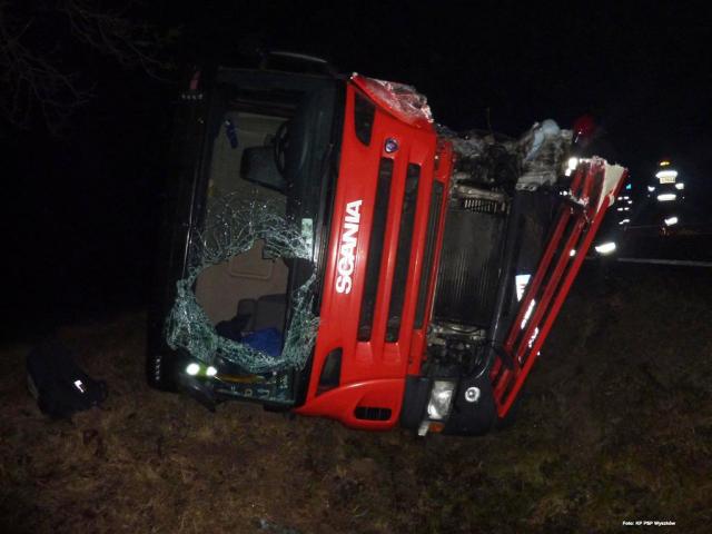 Po przybyciu na miejsce zdarzenia i przeprowadzeniu rozpoznania ustalono, iż Nissan Almera zderzył się czołowo z cysterną służącą do przewozu mleka. Pod samochodem osobowym znajdował się uwięziony kierowca. Przy użyciu narzędzi hydraulicznych strażacy wykonali dostęp do mężczyzny. Przybyły na miejsce lekarz stwierdził zgon kierującego 31-letniego mieszkańca gm. Baboszewo. Ponadto działania Straży polegały na zabezpieczeniu i oświetleniu miejsca akcji oraz uprzątnięciu pozostałości powypadkowych.