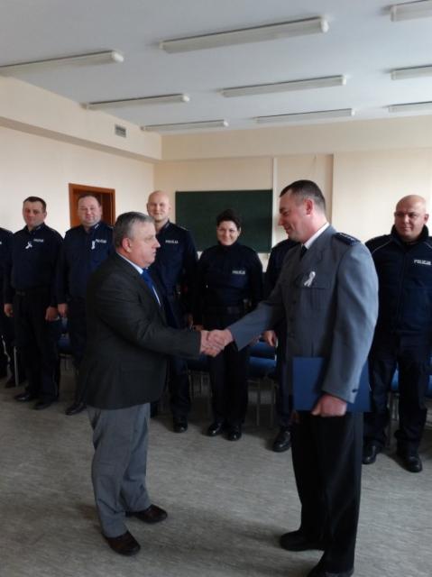 Komendant Powiatowy Policji w Wyszkowie mł. insp. Szymon Herman oraz wójt Gminy Rząśnik Pan Paweł Kołodziejski w obecności kadry kierowniczej i dzielnicowych KPP w Wyszkowie przekazali laureatowi dyplom, gratulacje oraz życzenia dalszych sukcesów w pracy zawodowej, podkreślając jednocześnie ważną rolę dzielnicowego w kontaktach z mieszkańcami.