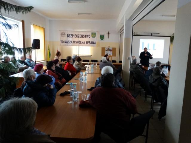 Mundurowi zapoznali uczestników ze sposobami jakimi posługują się oszuści opisując dokładnie metody "na wnuczka" i "na policjanta". Wypowiedzi policjantów poprzedzone były filmami obrazującymi działanie przestępców. Funkcjonariusze udzielili wskazówek co robić i jak się zachować , aby nie stać się ofiarą takiego przestępstwa.