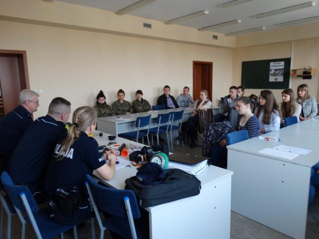 O własnych doświadczeniach, zaletach i wadach pracy opowiadali policjanci z wydziału prewencji, ruchu drogowego oraz kryminalnego. O trudzie pracy policjanta ale też satysfakcji z pełnionej służby i pomocy innym opowiadał komendant KPP w Wyszkowie insp. Michał Toporkiewicz. Młodzież miała też możliwości obejrzenia sprzętu wykorzystywanego przez policjantów w codziennej służbie.