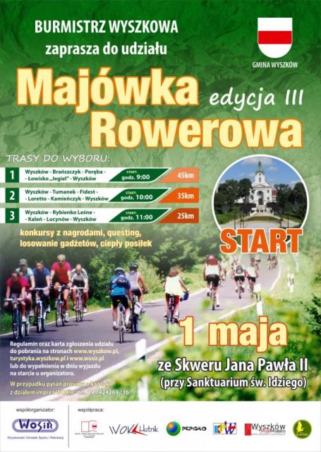 Burmistrz Wyszkowa zaprasza na Majówki Rowerowej. Do wyboru są trzy trasy o długości 45, 35, i 25 kilometrów.