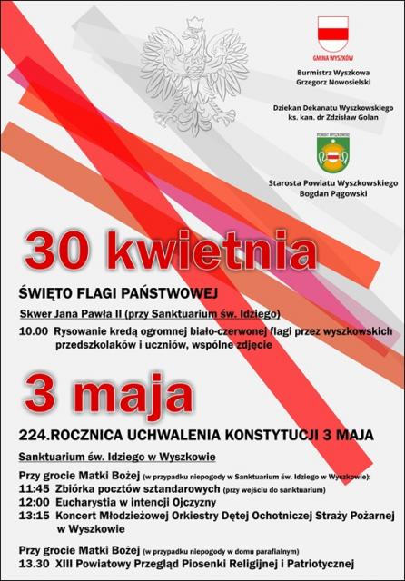 Tegoroczne obchody rozpoczną się 30 kwietnia malowaniem ogromnej flagi przez wyszkowskich przedszkolaków i uczniów.
