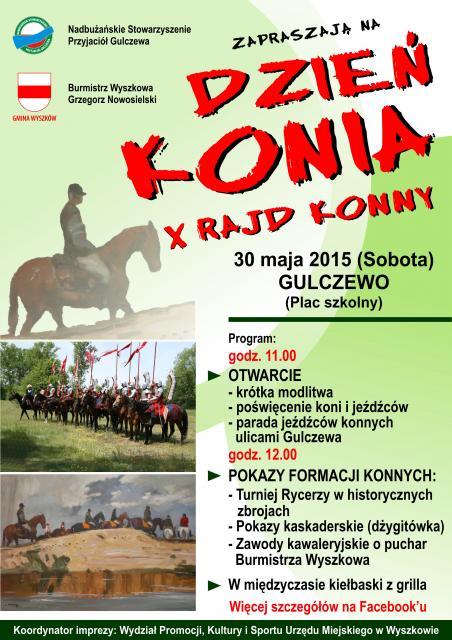 30 maja w Gulczewie odbędzie się jubileuszowy, bo dziesiąty "Dzień konia". UM Wyszków zaprasza na to wydarzenie nie tylko miłośników koni i jazdy konnej.