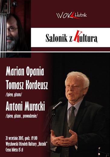 "Salonik z Kulturą" to cykliczny, autorski program kabaretowo-muzyczny Antoniego Murackiego. Tym razem wystąpią: Marian Opania, Tomasz Kordeusz i Antoni Muracki.