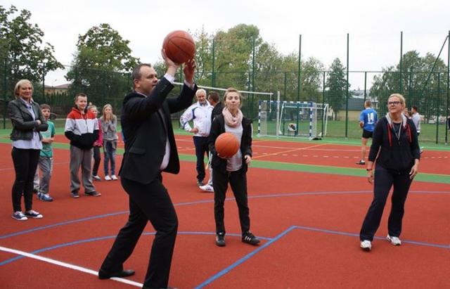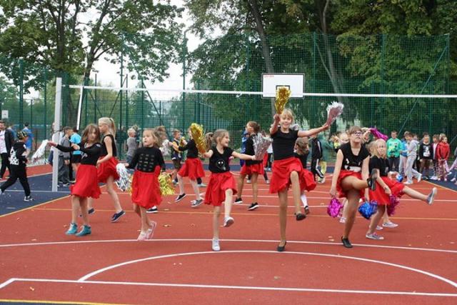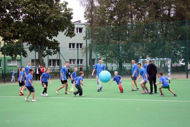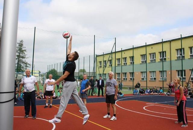 Na nowych kompleksach sportowych uczniowie klas 2-3 SP nr 2 rozegrali mecz "nietypowej" piłki nożnej przeciwko drużynie z "Kopernika", chętni rzucali do kosza, a na koniec samorządowcy kontra nauczyciele rozegrali mecz siatkówki.