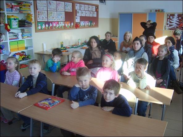 15 grudnia br. w oddziale przedszkolnym zgromadzili się uczniowie i ich rodzice na uroczystym podsumowaniu projektu. W trakcie jego realizacji uczniowie spotkali się na warsztatach z panią psycholog, wzięli udział w zajęciach integracyjnych w klasie I. Były również zajęcia taneczne z elementami zabaw teatralnych. Rodzice wzięli udział w trzech szkoleniach z psycholog i doradcą metodycznym. Podobnie nauczyciele klas 0-III ze szkoły oraz z terenu całej gminy uczestniczyli w wielu bardzo interesujących spotkaniach, m.in. z Bożeną Janiszewską i Barbarą Ochmańską. Całość działań została udokumentowana i przedstawiona rodzicom za pomocą krótkiej prezentacji multimedialnej. Projekt prowadzony był w celu ułatwienia rodzicom podjęcia decyzji we wcześniejszym posłaniu dziecka sześcioletniego do klasy I. Obecny na spotkaniu dyrektor szkoły Jan Hryniewicz przedstawił założenia reformy edukacji oraz aspekty dotyczące pójścia dzieci sześcioletnich do szkoły. Przypomniał rodzicom, że w roku 2014 wszystkie sześciolatki będą musiały rozpocząć naukę w klasie I.