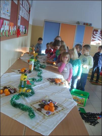 Każdy z przedszkolaków otrzymał ufundowaną prze Urząd Miejski mini-wyprawkę do klasy I. Był to worek na kapcie, zeszyt, długopis, ołówek i zakładka do książki. Na zakończenie spotkania wszyscy uczestnicy zostali zaproszeni na słodki poczęstunek. Dzieci samodzielnie przygotowały i dekorowały świąteczny stół ze smakołykami ufundowanymi przez wyszkowski UM.