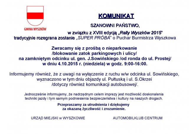 Utrudnienia w ruchu związane z Rally Wyszków 2015