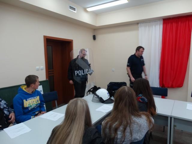 Uczniowie pierwszej klasy o profili policyjnym z IV Liceum Ogólnokształcącego w Wyszkowie w ramach zajęć lekcyjnych odwiedzili wyszkowską jednostkę Policji.