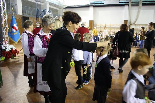 Oficjalnie w gminnej rodzinie młodych uczniów powitały przewodnicząca rady miejskiej Elżbieta Piórkowska oraz zastępca burmistrza Aneta Kowalewska. Każde dziecko otrzymało pamiątkową legitymację pierwszaka oraz pluszowego zająca.
