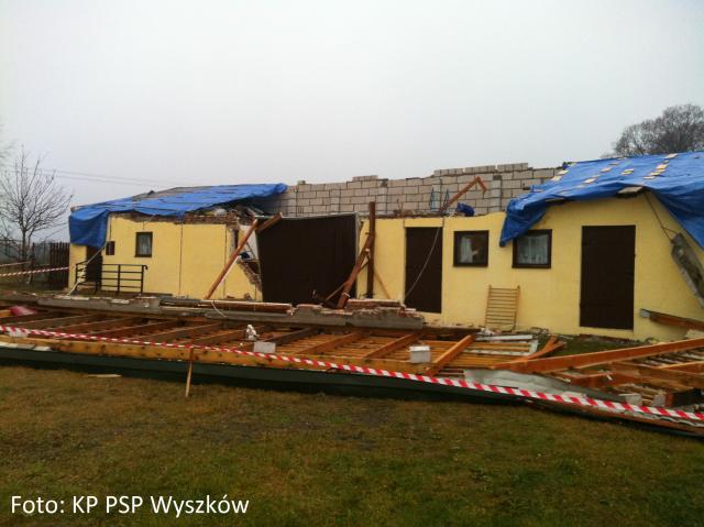 Silne porywy wiatru zerwały dach na budynku mieszkalno-gospodarczym w Wyszkowie.