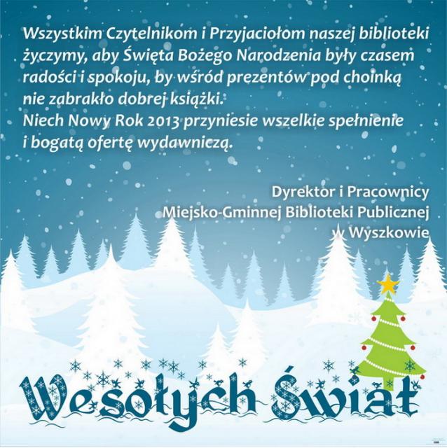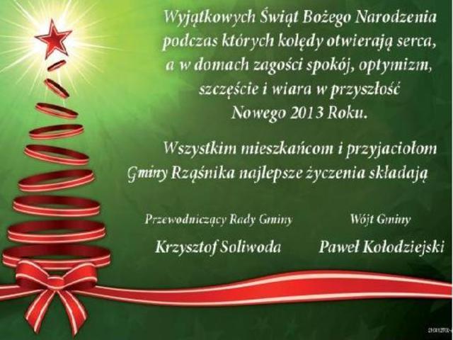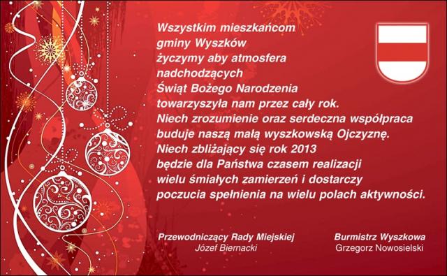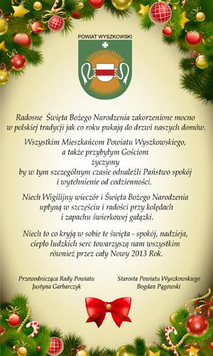 Zobacz jakie życzenia z okazji nadchodzących świąt Bożego Narodzenia i Nowego Roku 2013 składają mieszkańcom wyszkowskie instytucje.