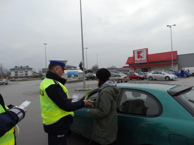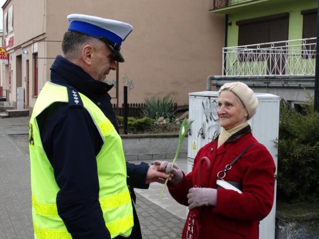 Policjanci Wydziału Ruchu Drogowego wyszkowskiej Policji w Dniu Kobiet obdarowali kwiatkami i serduszkami Panie - uczestniczki ruchu drogowego. Akcja pod hasłem "Bądź bezpieczna na drodze" była połączeniem Święta Kobiet z propagowaniem bezpiecznych zachowań na drodze.