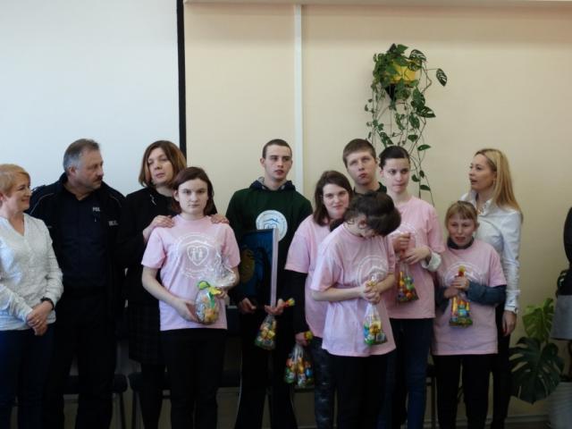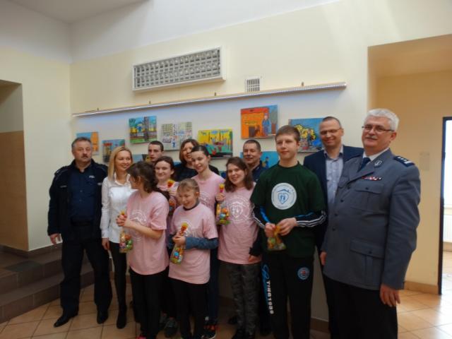 Wśród dwudziestu czterech bardzo kolorowych prac widoczni są policjanci ruchu drogowego, prewencji i kryminalnych. W otwarciu wystawy uczestniczyli autorzy prac, dyrektor Ośrodka Szkolno Wychowawczego w Wyszkowie Edyta Jarosz oraz nauczyciel opiekun artystyczny młodych malarzy Pani Anna Wojtaszek. Po obejrzeniu wystawy goście wspólnie z policjantami i pracownikami cywilnymi Policji wzięli udział w spotkaniu Wielkanocnym.