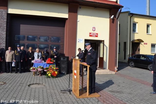 W drugiej części uroczystości miały miejsce przemówienia okolicznościowe oraz podziękowania. Komendant st. bryg. Ignacy Woźniak w swoim przemówieniu zawarł te piękne słowa: "W służbie drugiemu człowiekowi szybko mijają lata. Z dniem 30.04.2016 kończę służbę w Państwowej Straży Pożarnej. To jest dobry moment aby dokonać bilansu i podsumowania oraz spojrzeć na świat z innej perspektywy. Przeżyłem przez ten okres służby wiele różnych momentów i zawirowań. Zmieniały się strategie i cele, były wspaniałe czasy i trudne momenty. Rzeczywistość przynosiła nowe wymogi i oczekiwania spowodowane rozwojem cywilizacyjnym, pojawiały się nowe zagrożenia, którym strażacy musieli sprostać. Czas biegł w jednostkach PSP jak również OSP , przychodziły nowe pokolenia strażaków. Były wzloty i upadki, ale wśród strażaków nie zmieniło się oddanie , poświęcenie i służba na drugiego człowieka. Ostatnie lata oceniam jako jeden z najlepszych okresów w działalności straży pożarnej.