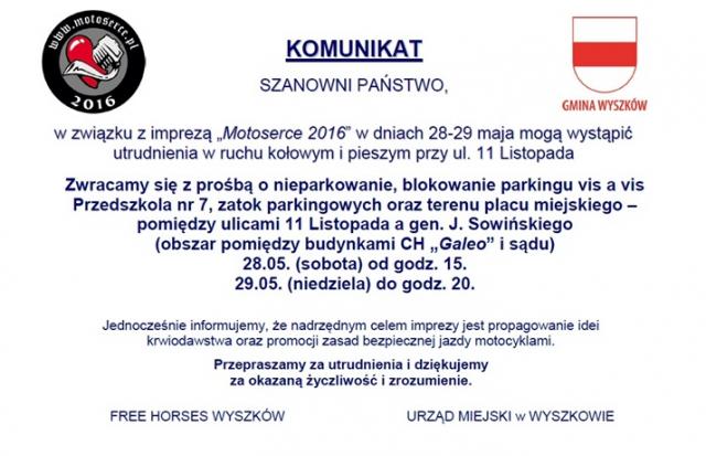 W związku z imprezą "Motoserce" 28-29 maja mogą wystąpić utrudnienia w ruchu kołowym i pieszym przy ul. 11 Listopada.