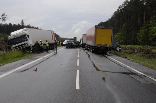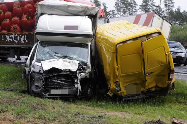 30 maja przed godziną 12:00 doszło do dwóch kolizji drogowych, w których łącznie uczestniczyło aż 7 pojazdów: 2 ciężarowe, 4 busy i osobówka. Jak wynika z ustaleń policjantów pracujących na miejscu zdarzenia kierowca mercedesa jadący w kierunku Warszawy nie zachował bezpiecznej odległości między pojazdami i uderzył w tył VW Bora, który z kolei uderzył w jadącego przed nim innego mercedesa, a ten w poprzedzającą go ciężarówkę Inveco. Dodatkowo w VW Bora, który w wyniku uderzenia znalazł się na przeciwnym pasie ruchu uderzył pojazd ciężarowy Daf. Prawie w tym samych czasie i miejscu kierowca innej ciężarówki marki Daf, również nie zachował należytej odległości między pojazdami i uderzył w tył pojazdu fiata Ducato.