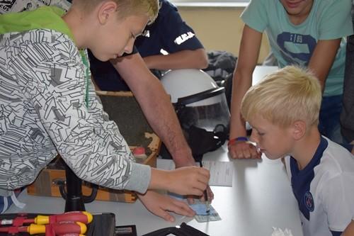 W ostatnim tygodniu wizytę w Komendzie Powiatowej Policji w Wyszkowie złożyła 20-osobowa grupa dzieci przebywających na półkoloniach zorganizowanych przez Towarzystwo Przyjaciół Dzieci w Wyszkowie. Podczas spotkania dzieci zapoznały się z pracą policjantów poszczególnych wydziałów. Goście z ogromnym zainteresowaniem przyglądali się, w jaki sposób technicy kryminalistyki ujawniają i zabezpieczają ślady na miejscu zdarzenia oraz pobierają odciski linii papilarnych palców. Policyjny sprzęt wykorzystywany w pracy zaprezentowali również policjanci z ruchu drogowego i prewencji.