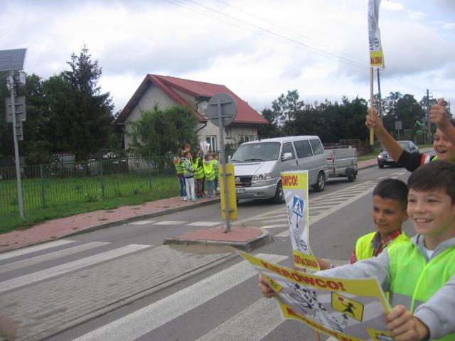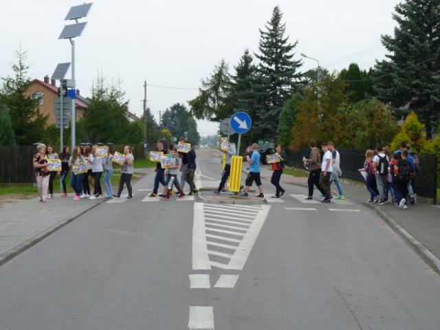 Uczniowie szkół wzięli udział w happeningach zorganizowanych przy przejściach dla pieszych.