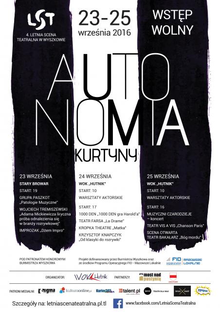 23 września w Starym Browarze wystąpi Grupa Paszkot, Wojciech Tremiszewski i Improzak. W sobotę na scenie "Hutnika" pojawi się Teatr Improwizowany 1000 DEN, Teatr Farsa, Kropka Theatre i Krzysztof Knapczyk. Niedziela należeć będzie do Teatru VIS-a-VIS, grupy Muzyczni Czarodzieje i Teatru Bakałarz, a na Scenie Otwartej wystąpią uzdolnieni artystycznie Wyszkowianie. Więcej szczegółów znajdziecie na plakacie oraz na stronie letniascenateatralna.pl.tl. Na wszystkie festiwalowe wydarzenia wstęp jest wolny.