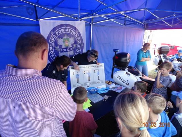 Konkursy i zabawy promujące bezpieczeństwo w ruchu drogowym to działania policjantów skierowane do najmłodszych uczestników imprezy sportowo - rekreacyjnej "Rally Wyszków 2016".