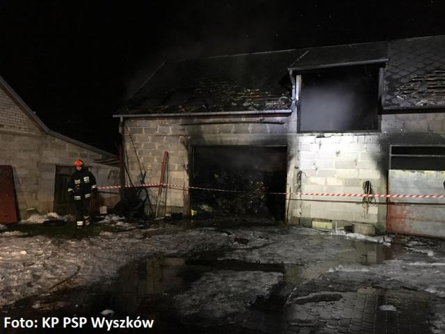 Działania straży pożarnej polegały na zabezpieczeniu miejsca zdarzenia, otworzeniu bramy przy pomocy podręcznego sprzętu burzącego, a następnie wejściu ratowników w aparatach powietrznych celem dokonania rozpoznania wewnątrz garażu. Ustalono, że palą się deski znajdujące się na poddaszu garażu oraz na dole drzewo opałowe traktor i jeden samochód osobowy. Podano trzy prądy w natarciu na palące się materiały.