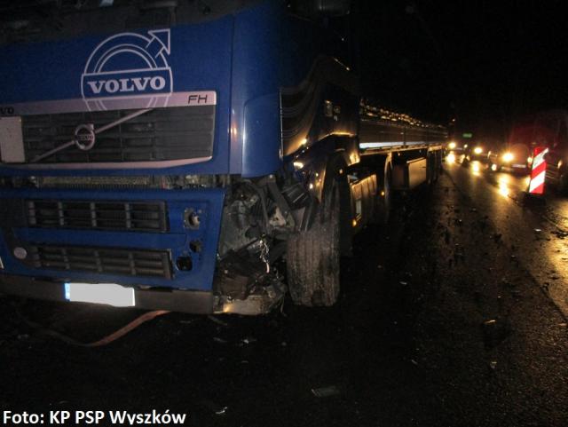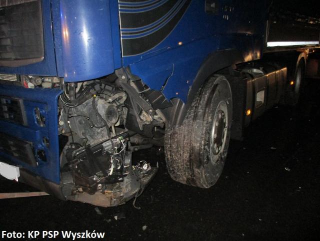 Po przybyciu na miejsce zdarzenia zastano zdarzenie drogowe, w którym brały udział dwa pojazdy, samochód osobowy oraz ciężarowy. Samochodami przemieszczały się dwie osoby (kierowcy). Obrażenia osób poszkodowanych ograniczyły się do podejrzenia urazu w odcinku szyjnym. Po przebadaniu przez będącego na miejscu zdarzenia lekarza nikt nie został przewieziony do szpitala.
