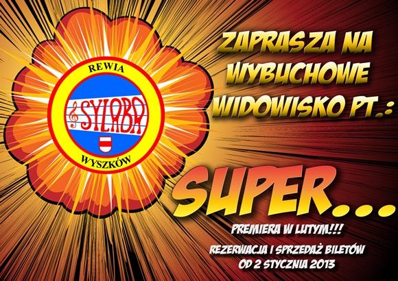10 lutego 2013 r., o godz. 16.00 na sali widowiskowej Wyszkowskiego Ośrodka Kultury "Hutnik"odbędzie się premiera najnowszego, wybuchowego widowiska Rewii Dziecięcej "Sylaba" pt."SUPER..."