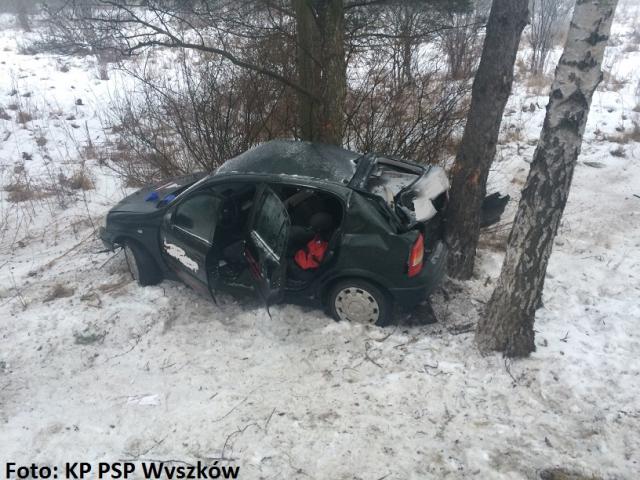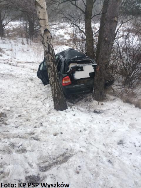 Opel wypadł z drogi i uderzył w drzewo (zdjęcia)