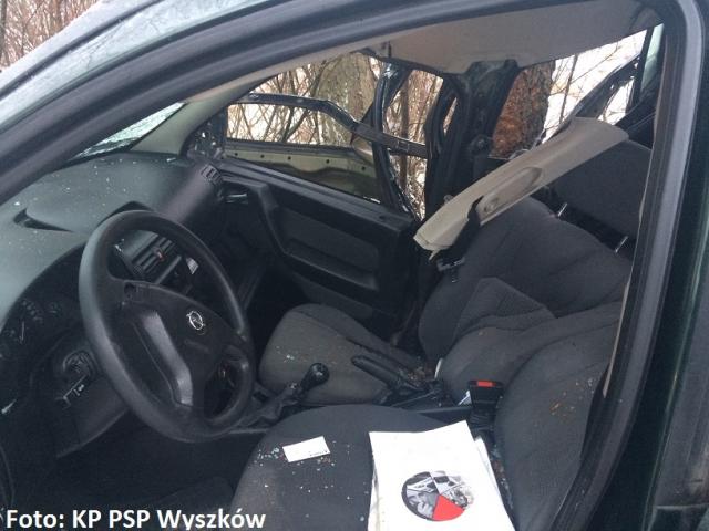 Działania PSP polegały na zabezpieczeniu miejsca zdarzenia, wykonaniu dostępu do osoby znajdującej się wewnątrz samochodu, otwarcie drzwi oraz odłączeniu akumulatora.