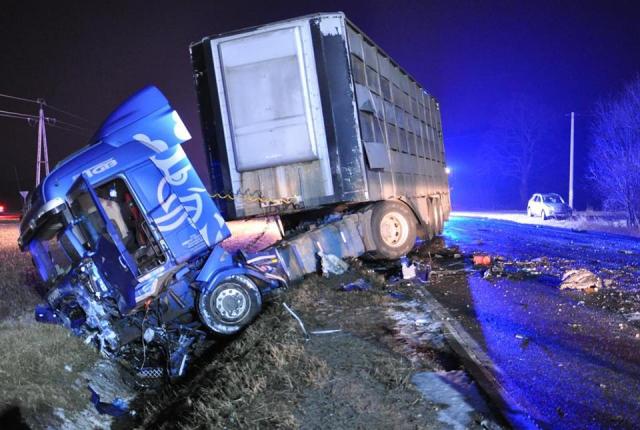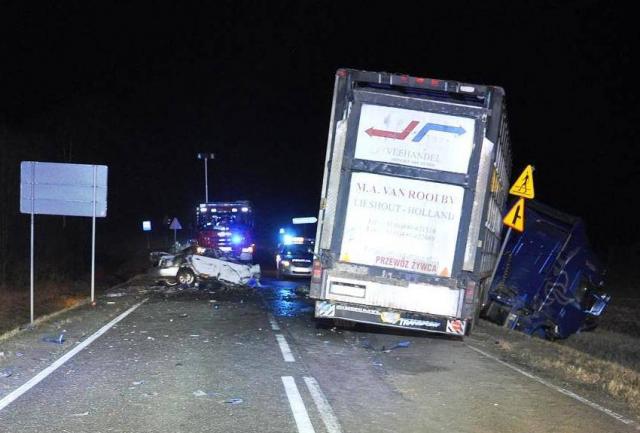 Kierujący Scanii nie odniósł obrażeń, natomiast 27- letni kierujący samochodem osobowym zmarł w zakleszczonym palącym się pojeździe. Obowiązująca prędkość w miejscu zdarzenia wynosi 70 km/h.
